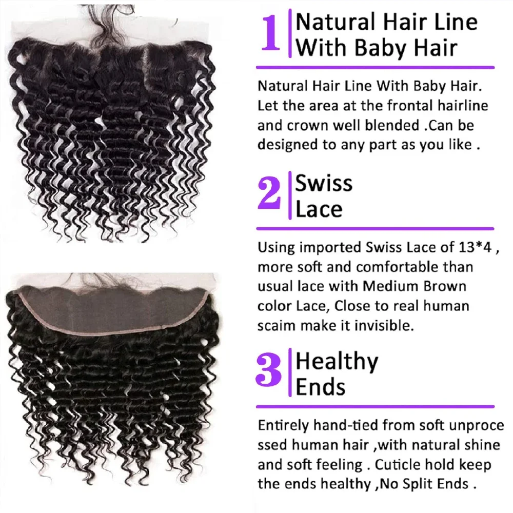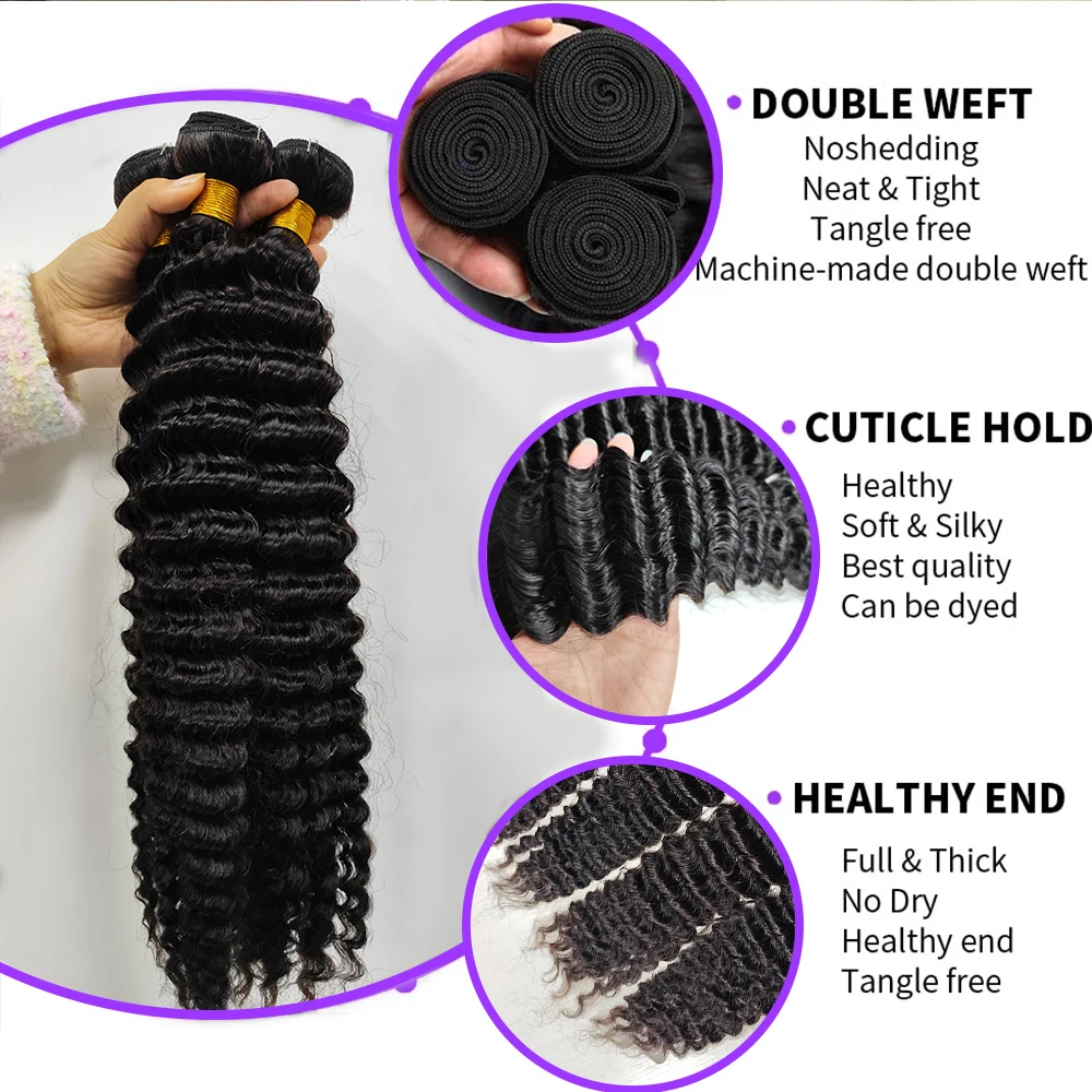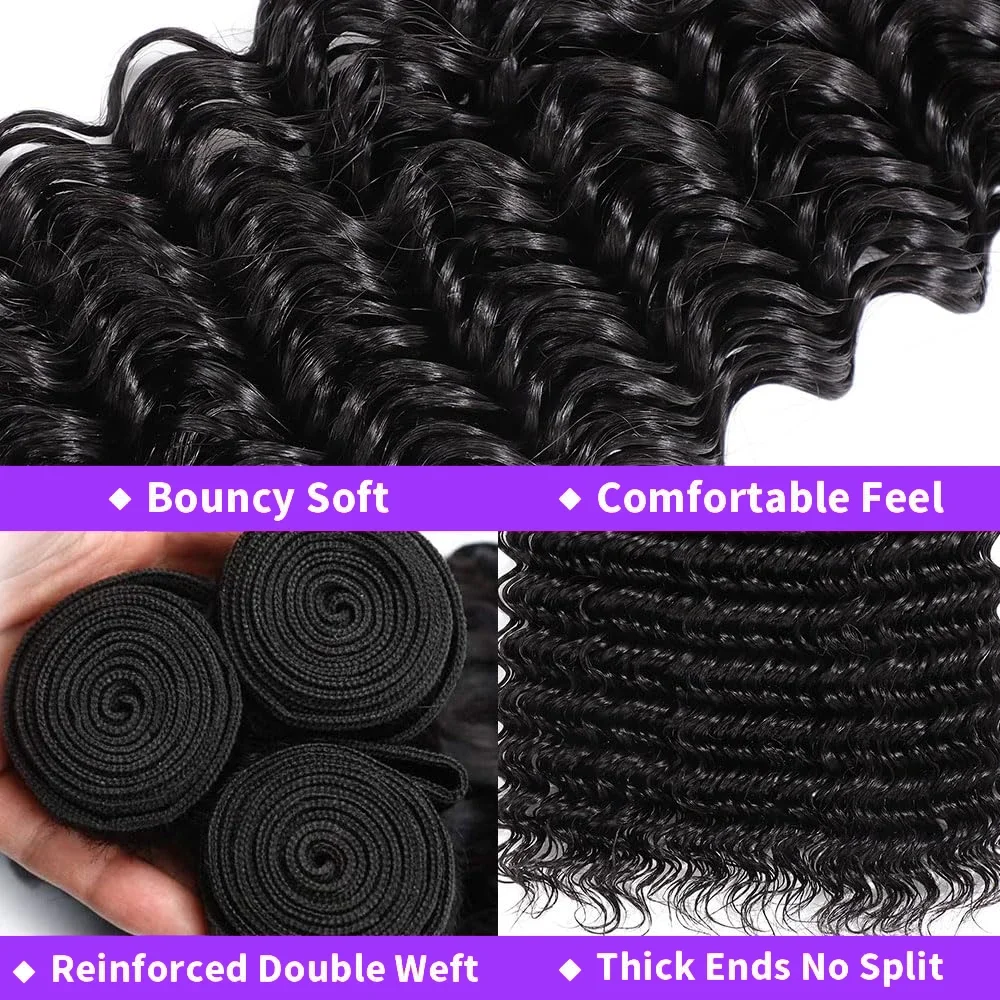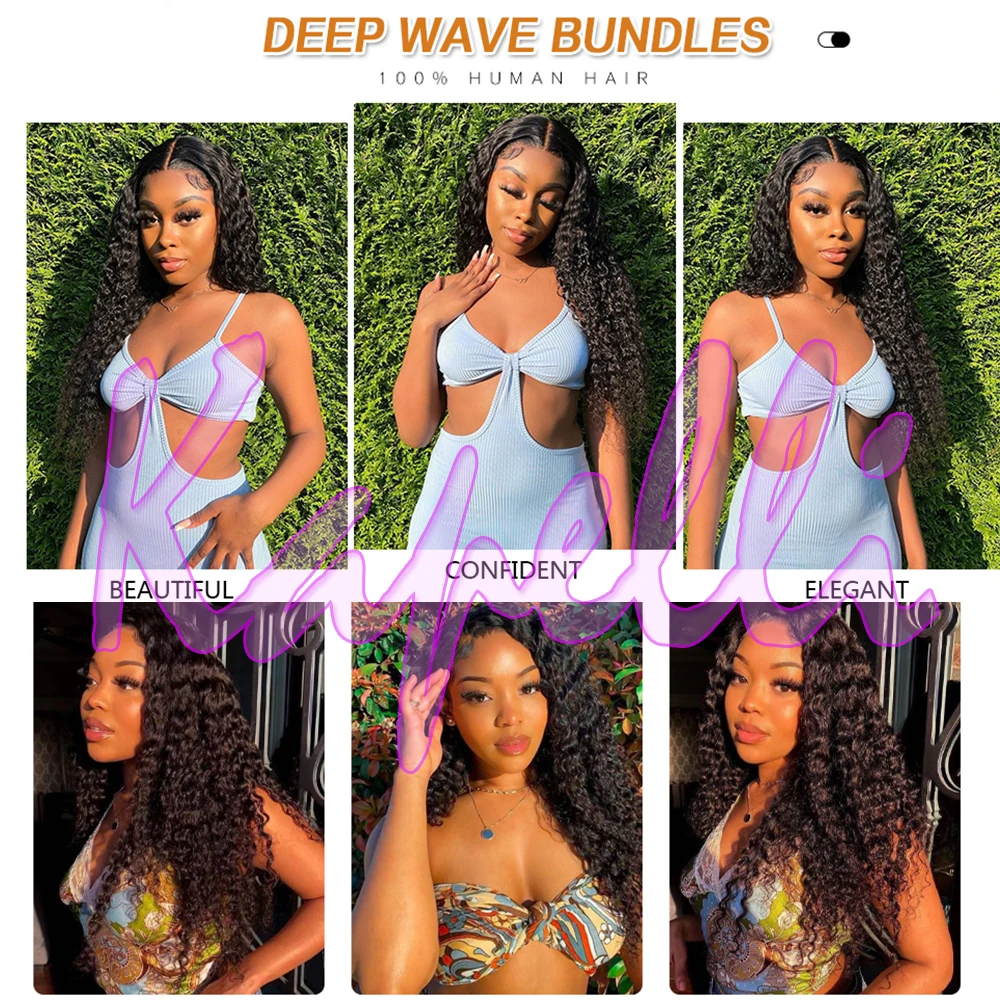 Deep Wave Bundles Advantages: Double Machine Strong Weft, Our Bundles Are Made of 100% Brazilian Human Hair. They Are Soft and Smooth with No Mixed Hairs. The Ends Are Full and Natural, with No Weird Smell