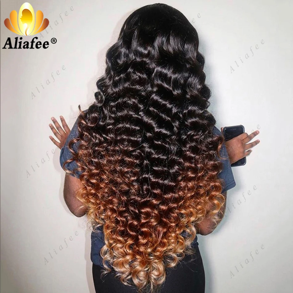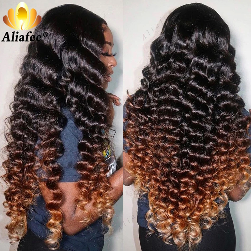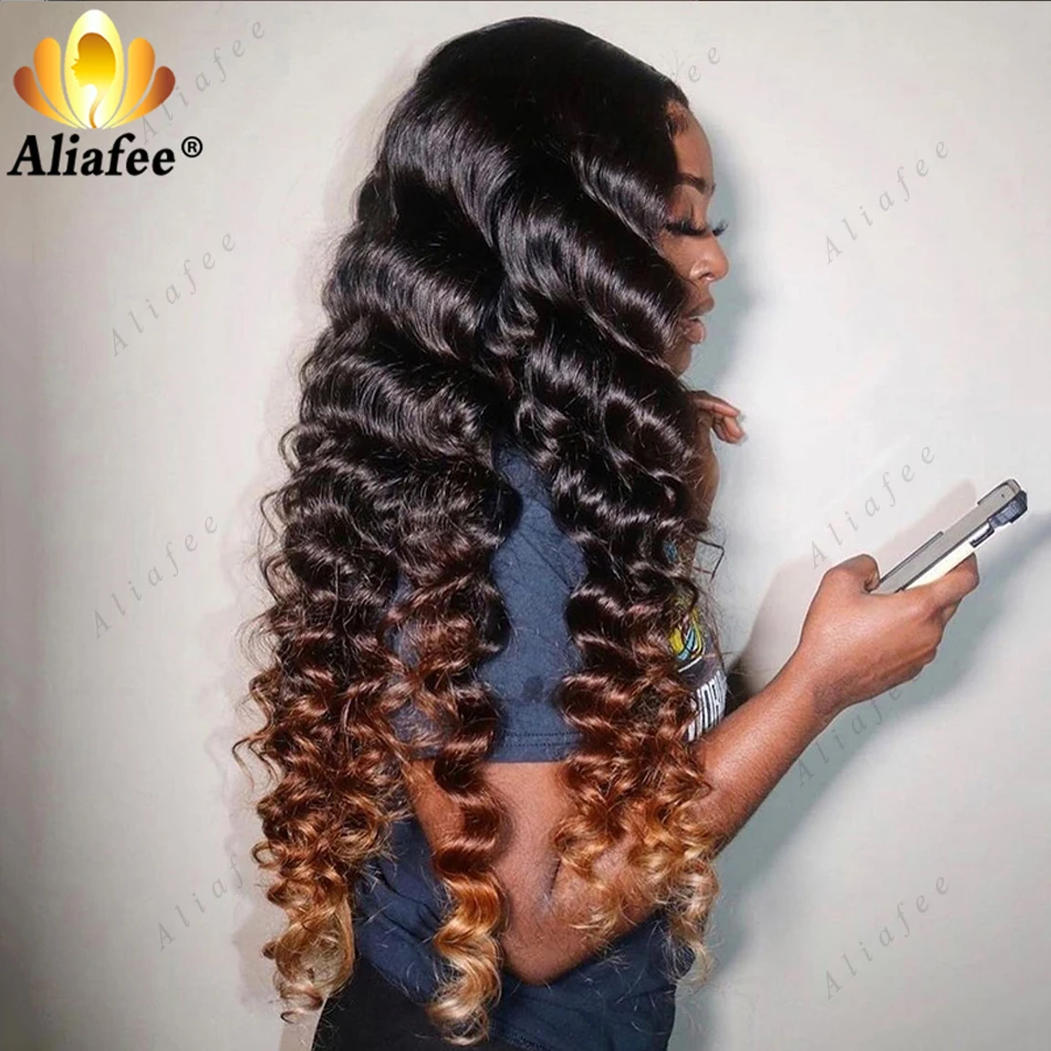 HD 13x6 Loose Deep Wave Wigs Curly Lace Frontal Human Hair Wigs Honey Blonde Ombre Colored Lace Front Wig PrePlucked For Women