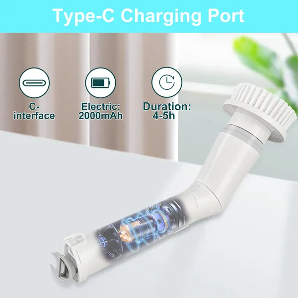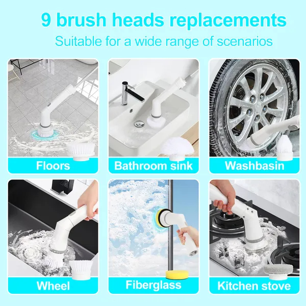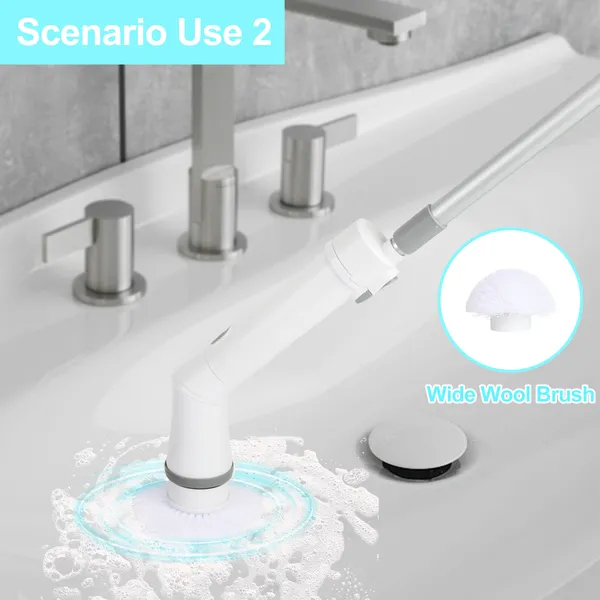 Equip brush heads with different purposes according to daily life scenarios, such as pointed brushes for cleaning bathroom corners, and sponge brush heads for cleaning surface stains on tableware, glass, and furniture. Different brush heads can be switched to meet different cleaning needs.
