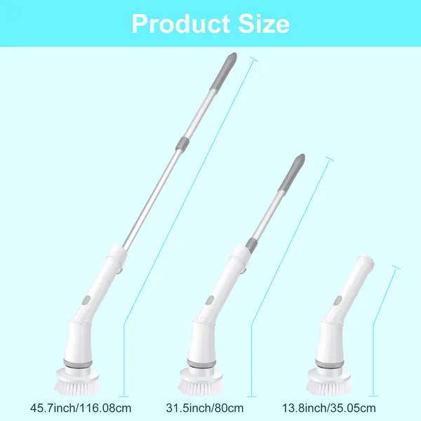 IAGREEA Shower Scrubber With 6 Replaceable Brush Heads, IPX6 Waterproof Cordless Power Cleaning Brush With Adjustable Extension Handle, Rotating Brush Shaft, And 2-speed Shower Cleaner For Cleaning