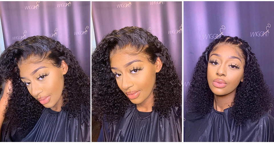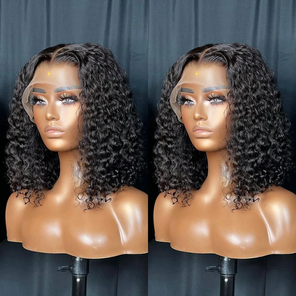 Ready to Wear Glueless Wigs Kinky Curly Lace Front Human Hair Wigs 13X4 Short Bob Wig Deep Wave Lace Frontal Wigs for Women 180%